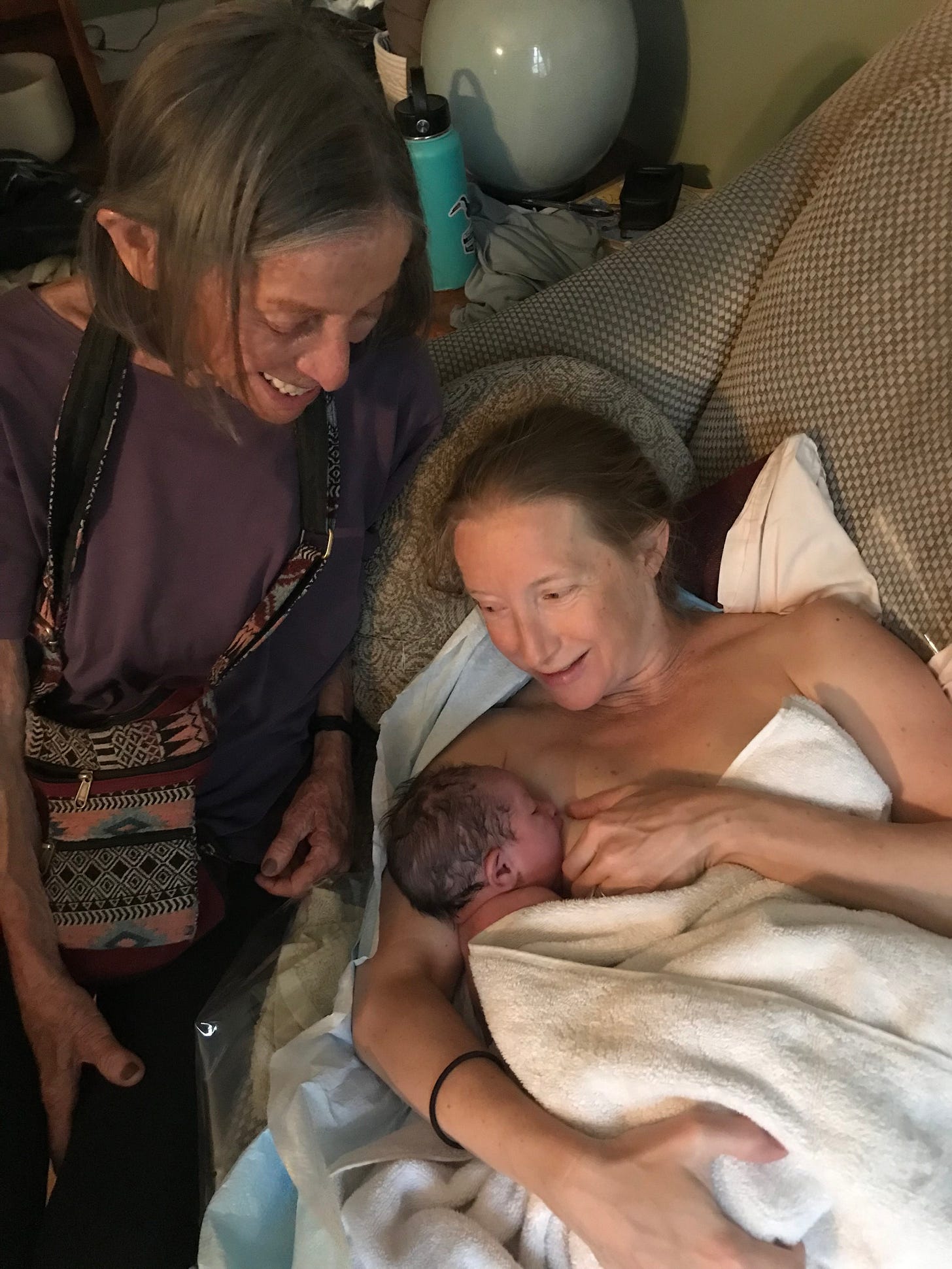 The thing about grief is time doesn’t really dilute it. Caffeine, work, exercise— temporarily mute it. But it pops right back up. I keep thinking I’ll write about something else, and often start to— and my psyche is like “No, sorry. I’m in charge!” So I promise if you make it to the end of the essay, a baby gets born. Meanwhile it’s in 11 parts, so you can choose your own adventure. If that’s the part you’re into, go forth. Also, see my mom in that messy, very unedited photo, hovering above us, after I gave birth a few feet from my couch? She always wore that bag around her neck, like a person in a fable holding a talisman.